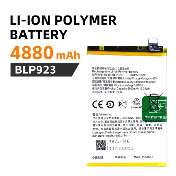 Li-Ion Polymer Battery, 4880 mAh, BLP923